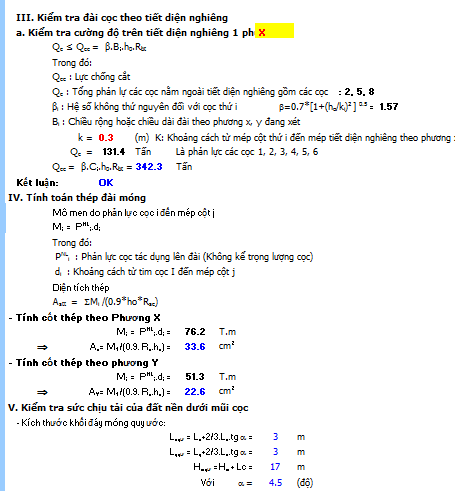 Tính toán kiểm tra cọc, đài móng, lún móng, kiểm tra đâm thủng.