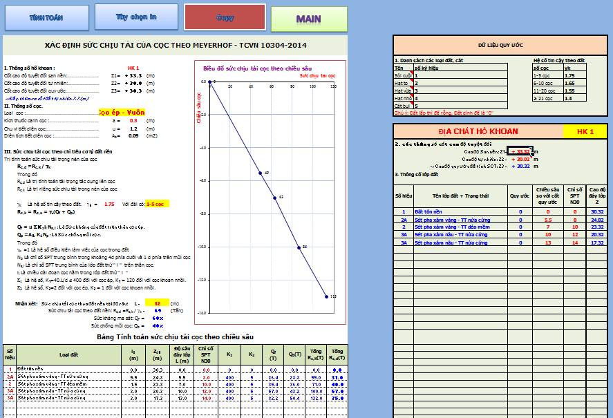 Tính toán sức chịu tải cọc theo: Đất nền, Nhật bản, MeyeRhof....