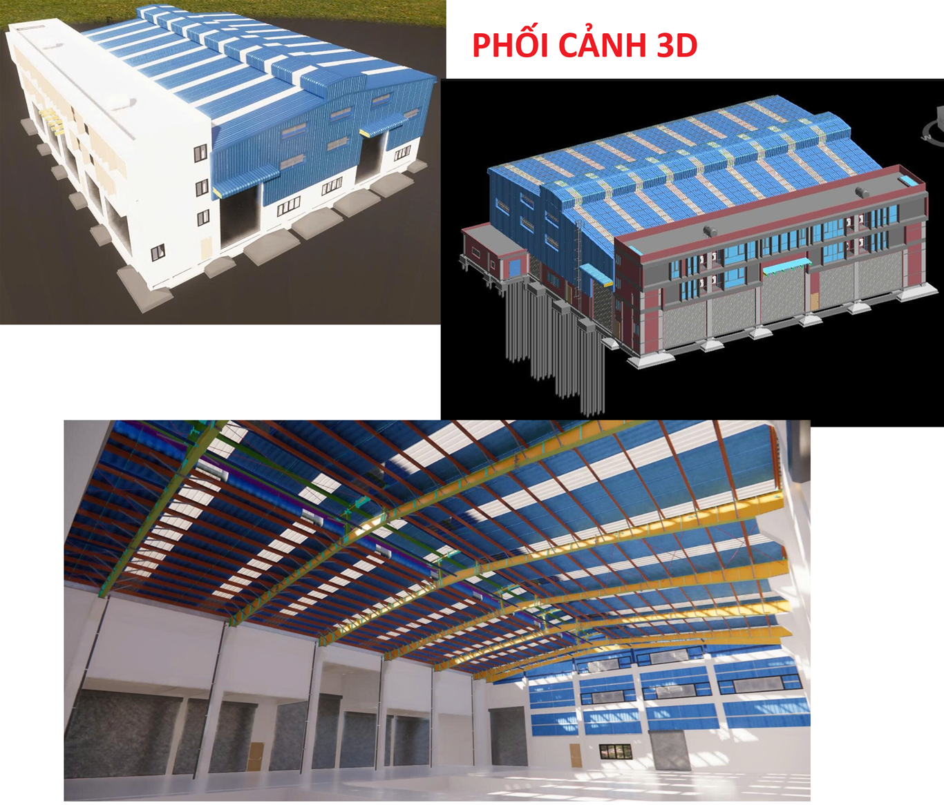 - Các chi tiết cấu tạo nhà xưởng ( Xem mô hình 3D Tekla, ảnh và video thực tế )
