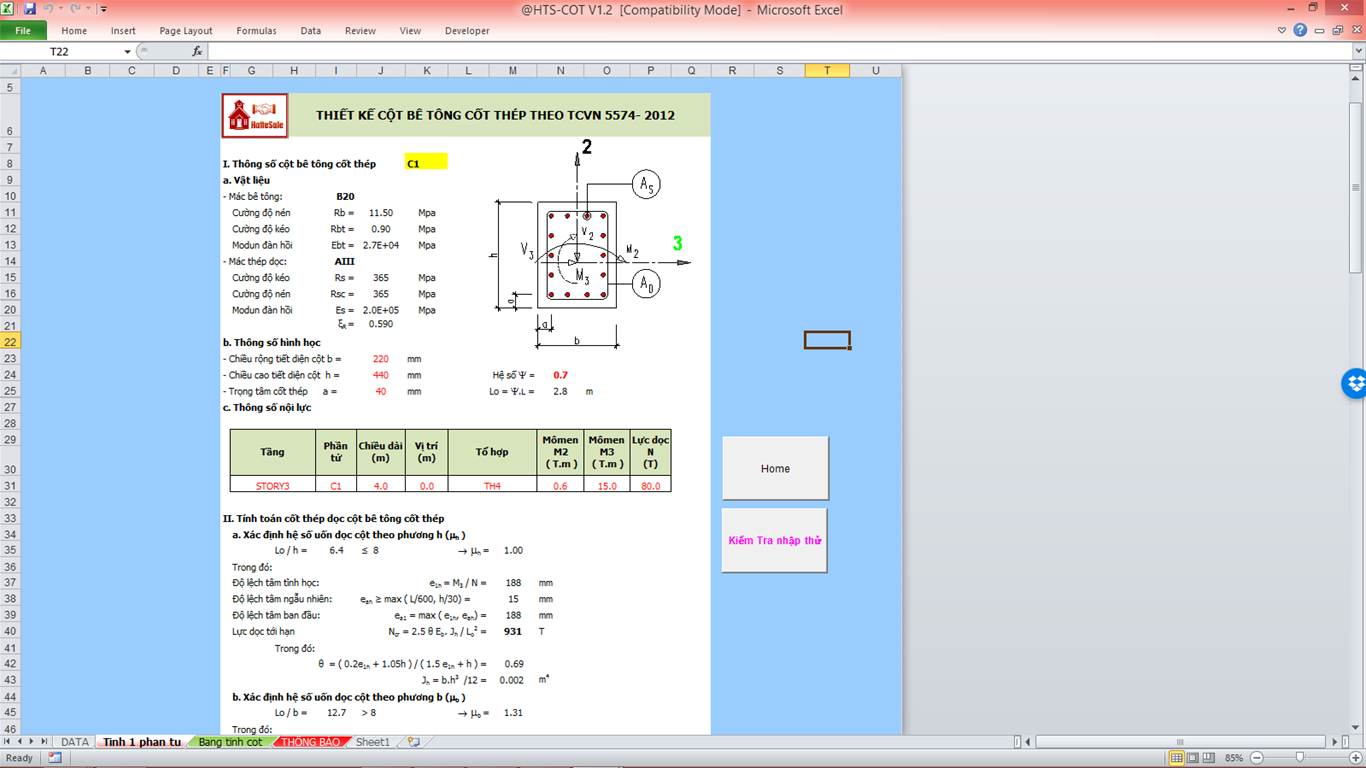 Tính Cột Bê Tông Cốt Thép theo TCVN 5574-2018
